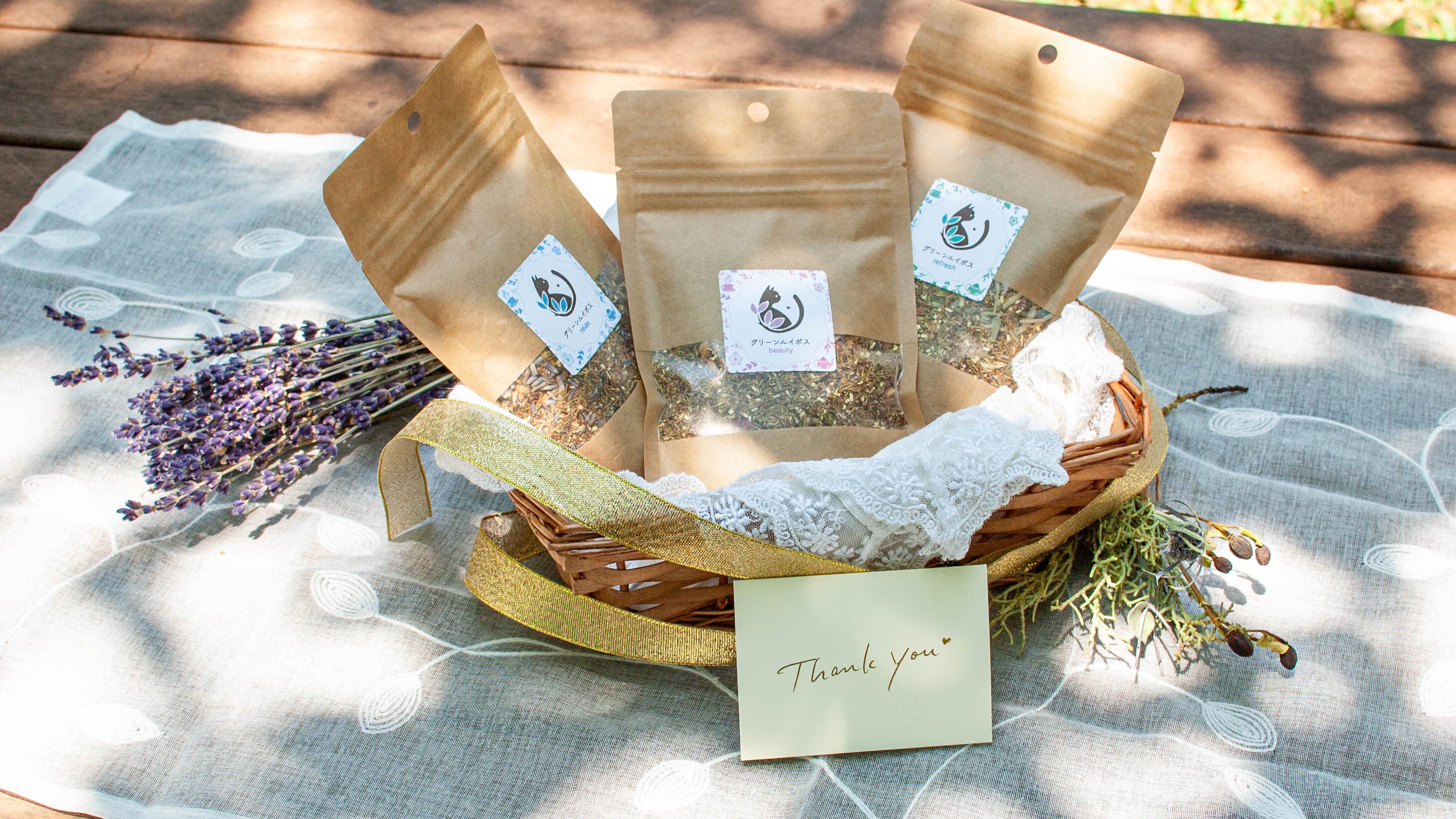 ココロとからだをほっこり癒す、くろねこ漢方のブレンドハーブティやドライフルーツ。