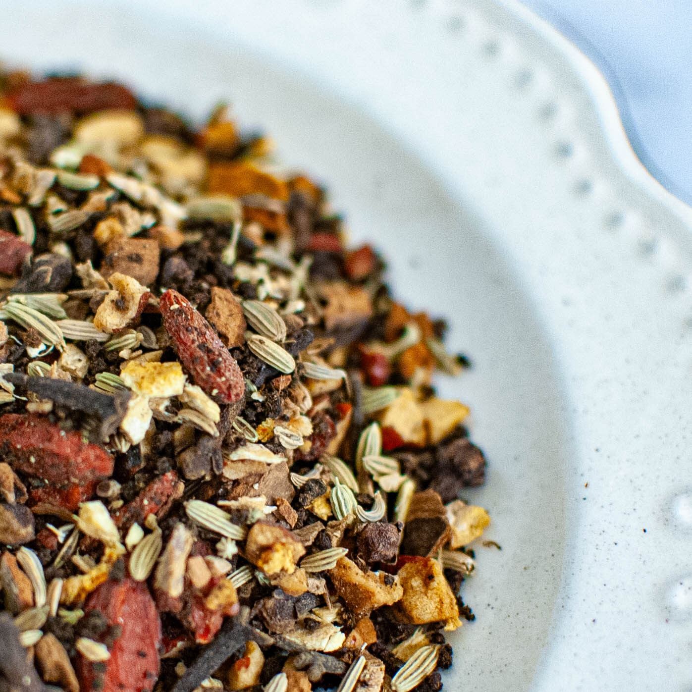 濃く煮出してチャイにしても、お湯を注ぐだけでもOK(詳しくは別ページ「漢方チャイの飲み方」をお読みください)!